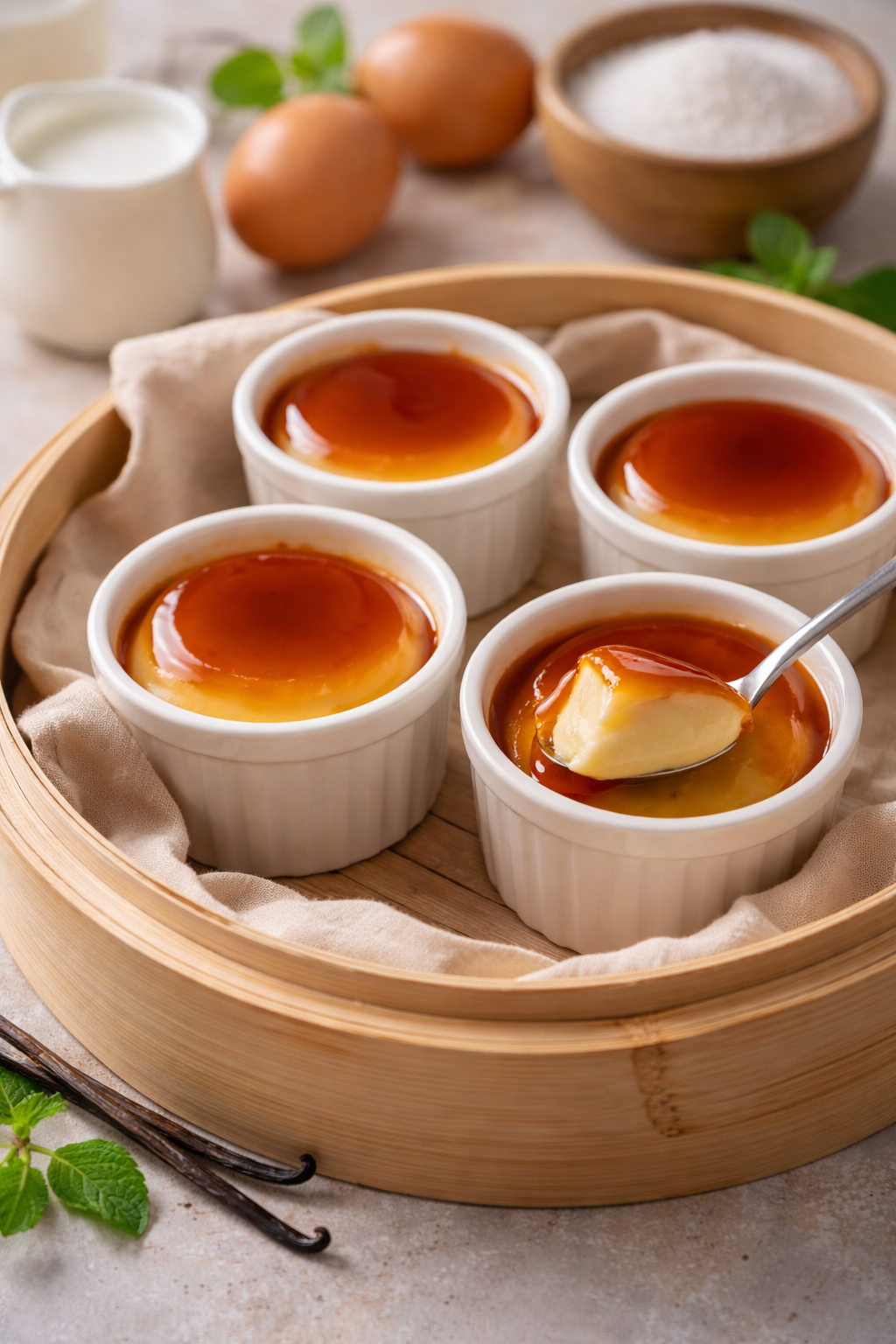 蒸し器で作るプリンは、オーブンがなくても本格的な味わいを楽しめるレシピです。